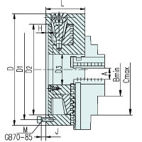 該產品是手動的盤絲型自定心卡盤,短圓柱連接型。